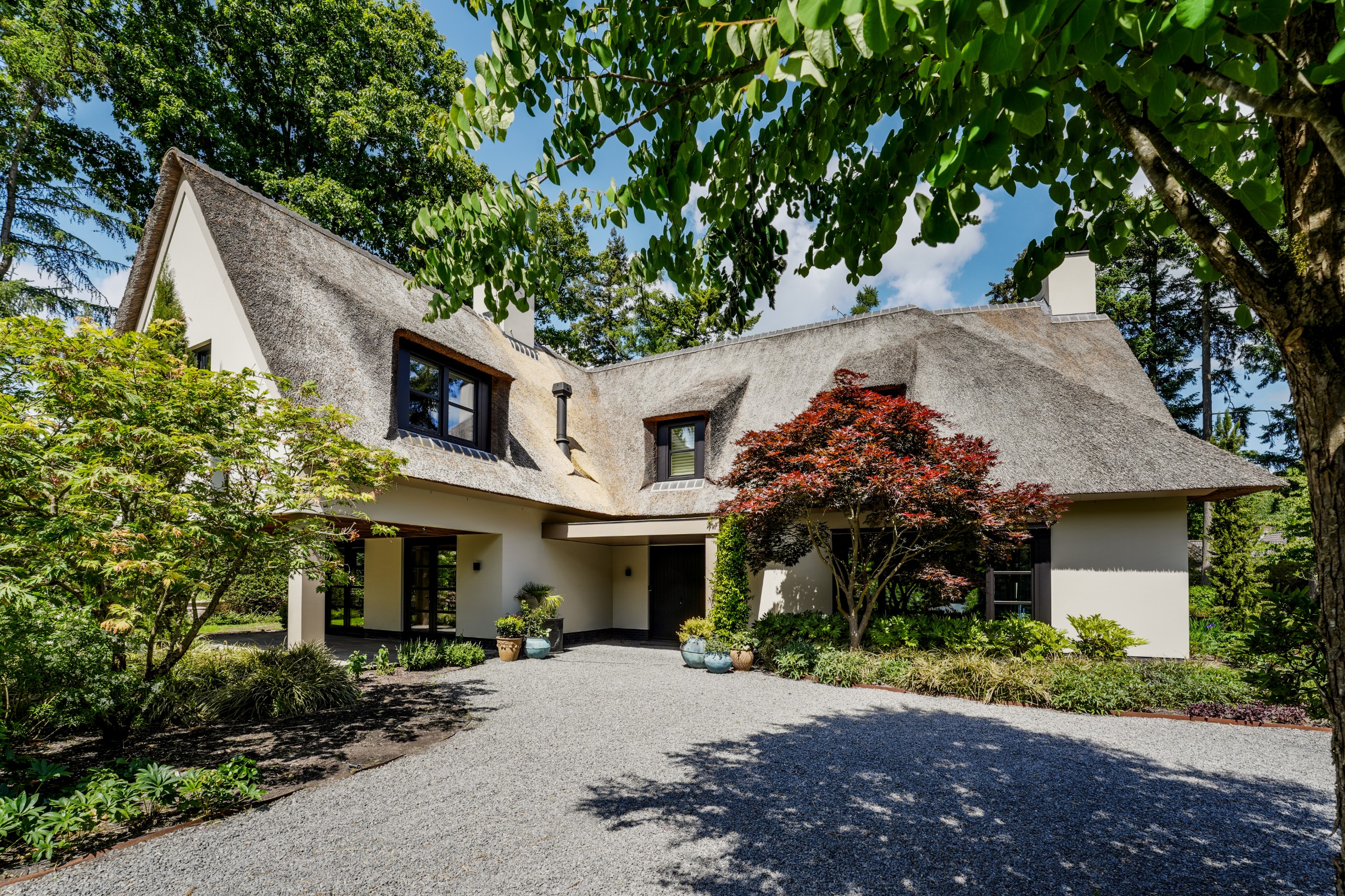 Te midden van het karakteristieke en geliefde Blaricum en op loopafstand van het Mauvezand ligt deze onder architectuur gebouwde RIETGEKDEKTE VILLA met separaat GUESTHOUSE, op een prachtig perceel van maar liefst 4.418 m². Deze unieke villa is gerealiseerd met hoogwaardige materialen, optimaal geïsoleerd en verfijnd tot het hoogste niveau van luxe en comfort. Achter de beveiligde toegangspoort ontvouwt zich een wereld van rust en privacy, met een lange oprijlaan, meerdere terrassen, een indrukwekkend aangelegde tuin van landschapsarchitect Paul Sangha en een woonoppervlak van ca. 655 m².
